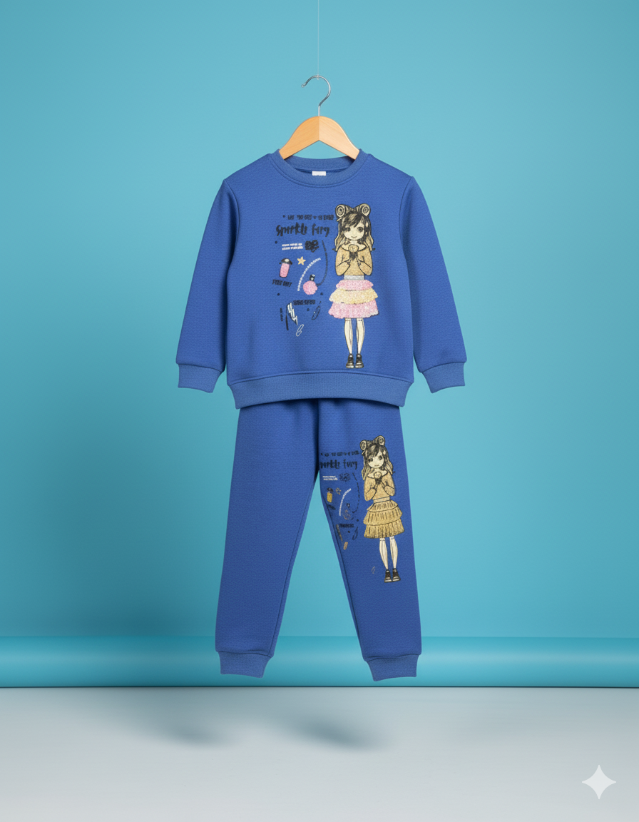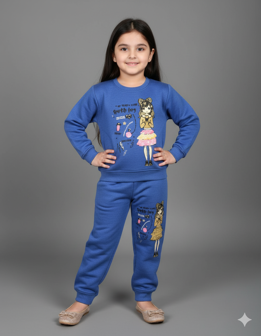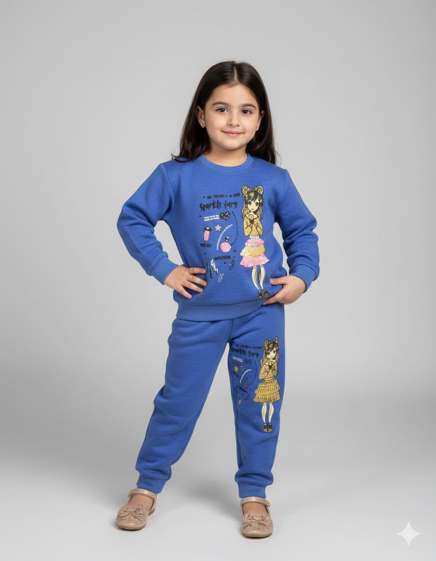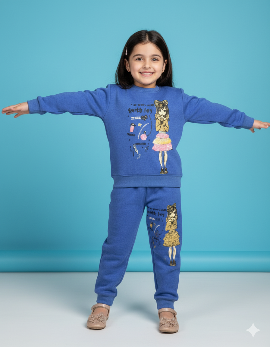 Introducing our Azure Frost Sparkle Set, a two-piece blue sequin tracksuit designed exclusively for girls. Immerse your little one in winter magic with this chic and cozy set. Crafted from excellent-quality warm and soft fleece, it promises unparalleled comfort during chilly days. The exquisite stitching not only enhances durability but also adds a touch of sophistication to the design. Whether for a casual day out or a snug indoor gathering, the Azure Frost Sparkle Set ensures a perfect balance of warmth and style. Let your girl shine through the winter in this comfy and fashionable two-piece wonder.