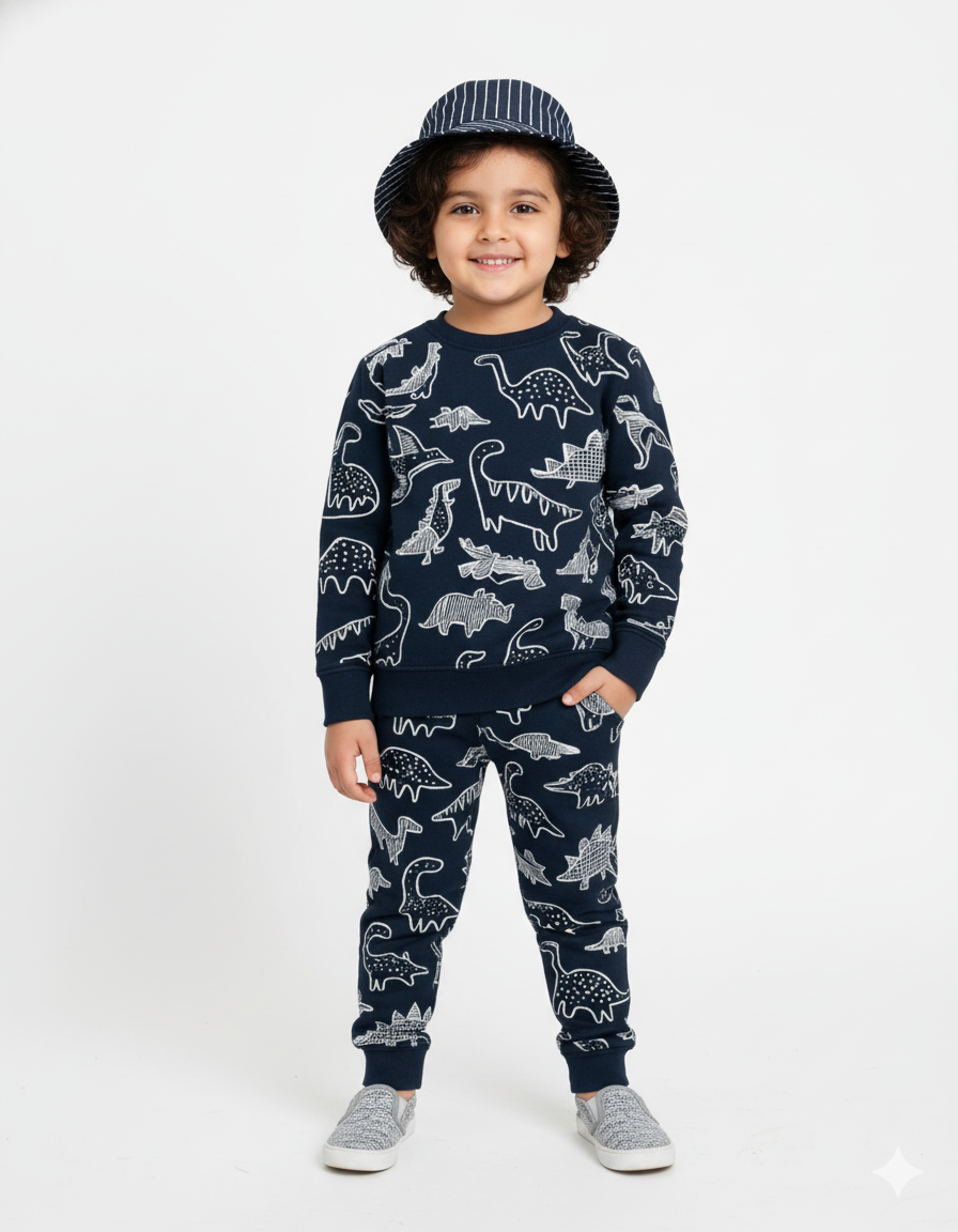 Let your little explorer step into style with this adorable Dinosaur Print Tracksuit. Designed for both comfort and fun, it’s perfect for dino-loving kids who enjoy playful outfits.