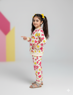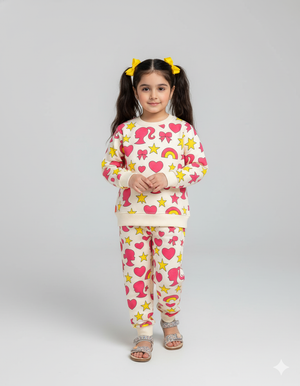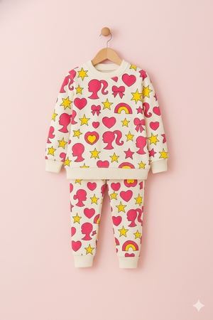 Girls Barbie Print Winter Tracksuit | Cute Heart, Star & Rainbow Printed Fleece Suit