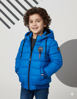 Keep your child cozy and stylish this winter with our Boys Blue Winter Puffer water proof Jacket with Hood. Crafted from premium wind-resistant and insulated material, this jacket offers the perfect blend of warmth and comfort during chilly days.