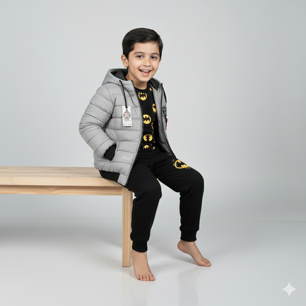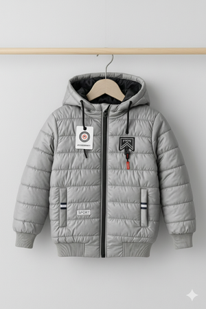 This Boys Grey Hooded Puffer Jacket is the perfect blend of comfort, warmth, and fashion — making it a winter essential for every young trendsetter.