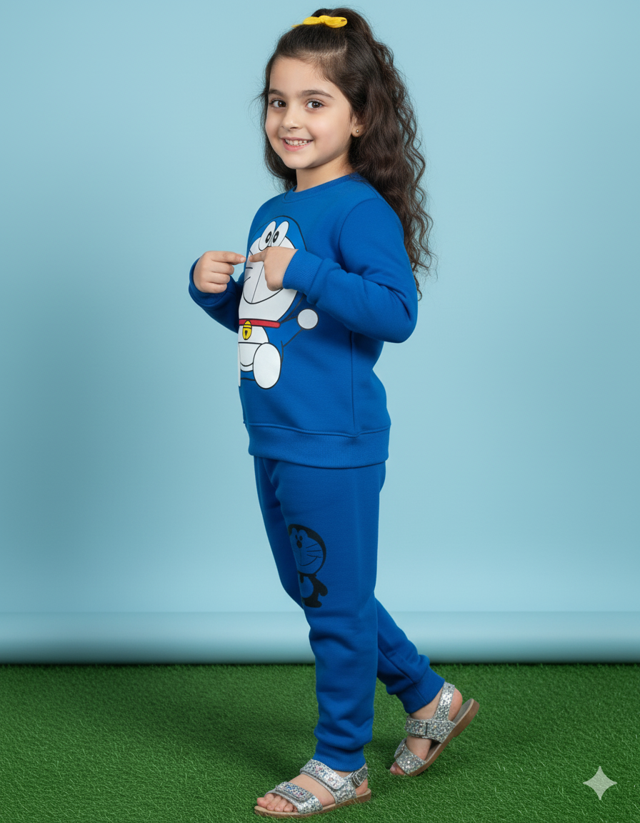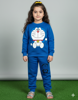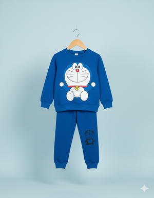 Doraemon Printed Kids Winter Sweatshirt & Trouser Set – Warm Fleece Outfit (Blue Color)