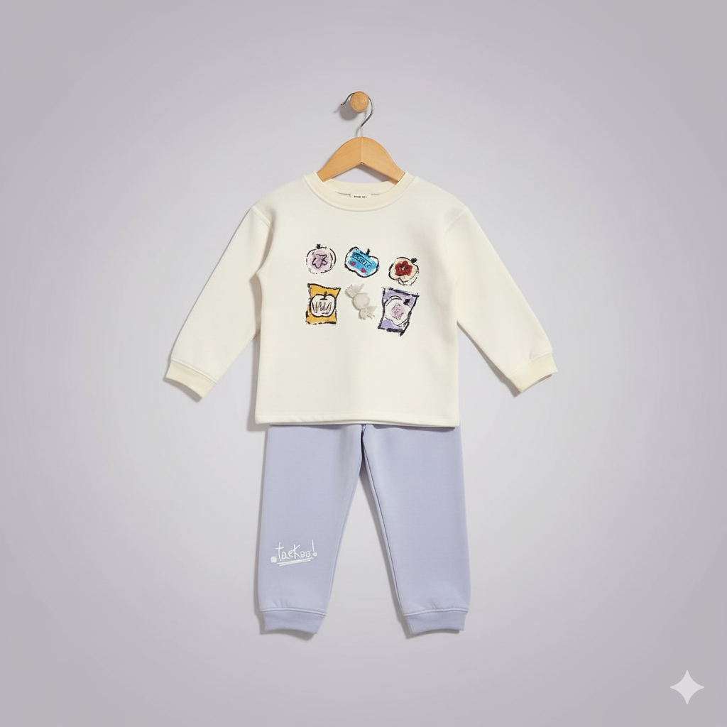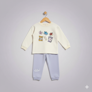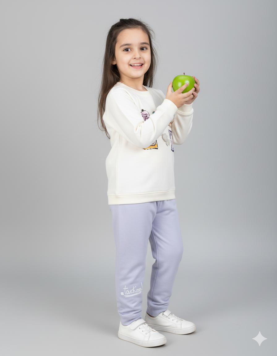Add some cozy cuteness to your little oneβs wardrobe with this Snacks Print Baby Girl Tracksuit! π¬ Featuring a cream sweatshirt with adorable snack-themed prints and soft lavender jogger pants, this outfit is perfect for winter comfort and playful days. Made from premium fleece fabric, it ensures warmth, softness, and flexibility so your child can move freely while looking stylish,Sweat suit inner micro fleas.
