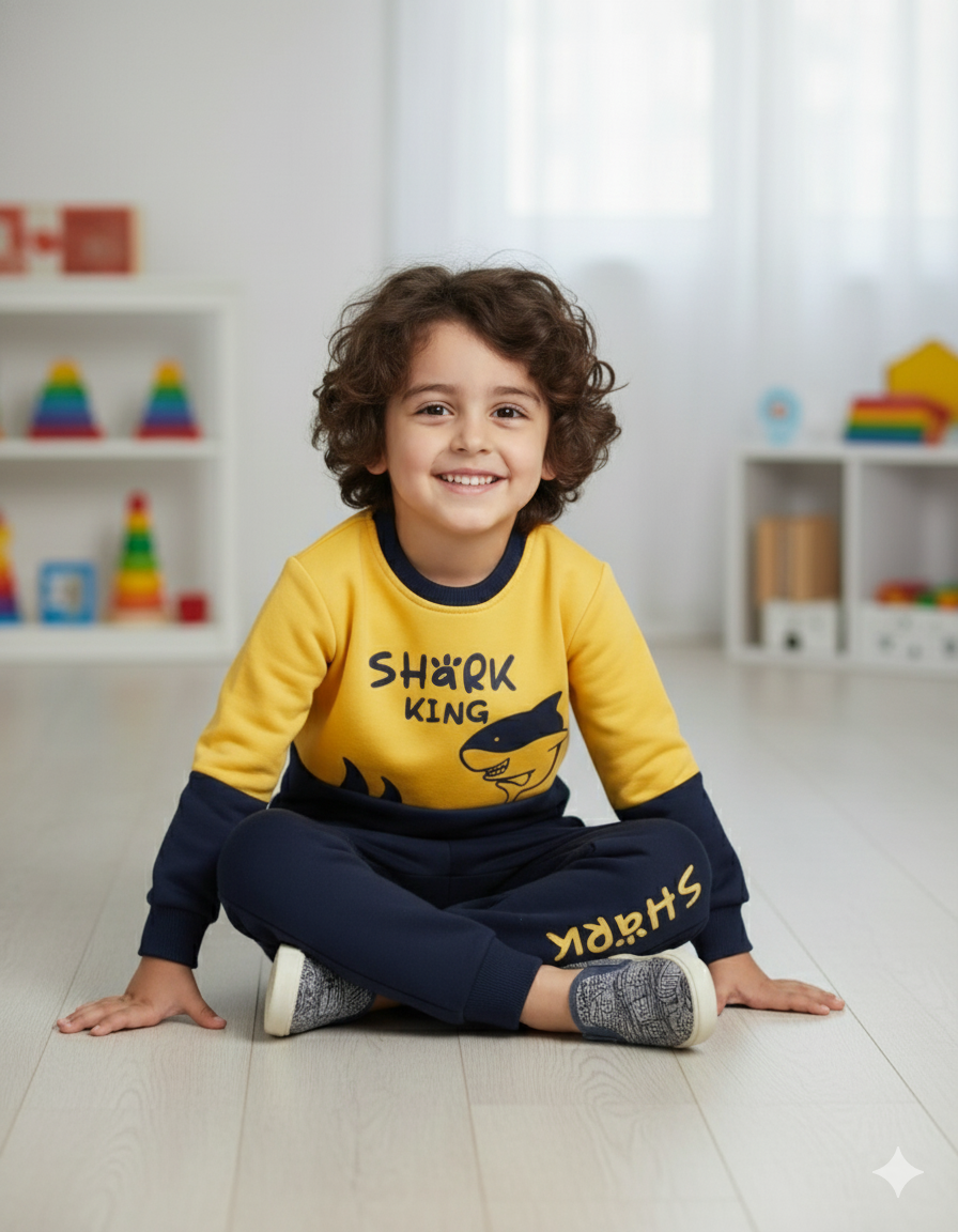 Shark King Adventure Tracksuit - Cozy & Fun Two-Piece Set for Kids