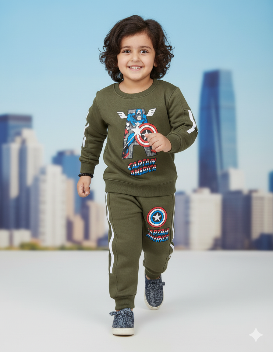 Elevate your little one's winter style with our "Forest Green Cozy Comfort" Boys' Winter Tracksuit. Made from ultra-soft fleece fabric, it provides warmth and a plush feel. High-quality stitching ensures durability, even after countless washes. Keep your boy snug, trendy, and enjoy easy washing with this winter essential.