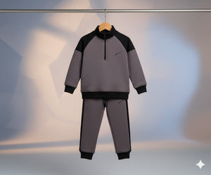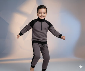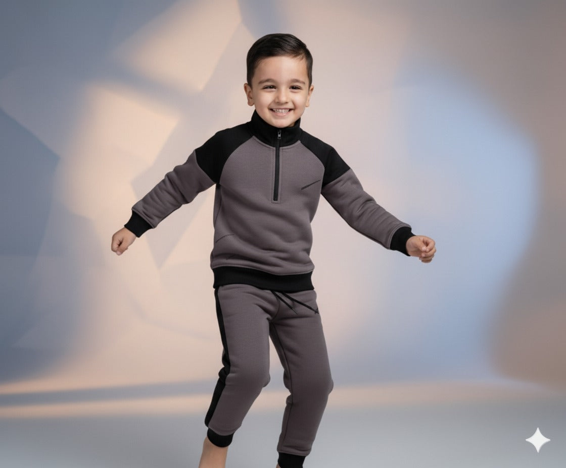 Boys Grey & Black Half-Zip Tracksuit | Stylish Winter Outfit