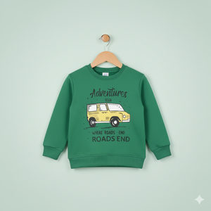 Give your little explorer the perfect winter look with this Kids Adventure Sweatshirt. Made from soft fleece fabric, cozy fabric, this stylish green pullover features a bold yellow jeep graphic with the inspiring quote “Adventures Begin Where Roads End”.