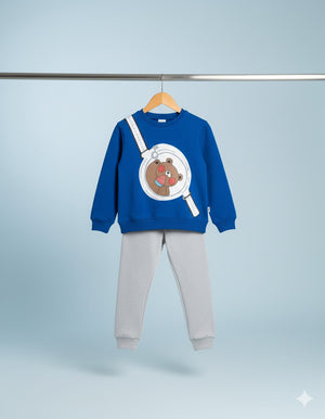 Kids Blue Bear Print Sweatshirt & Grey pant Set – Cute Winter Tracksuit for Boys & Girls