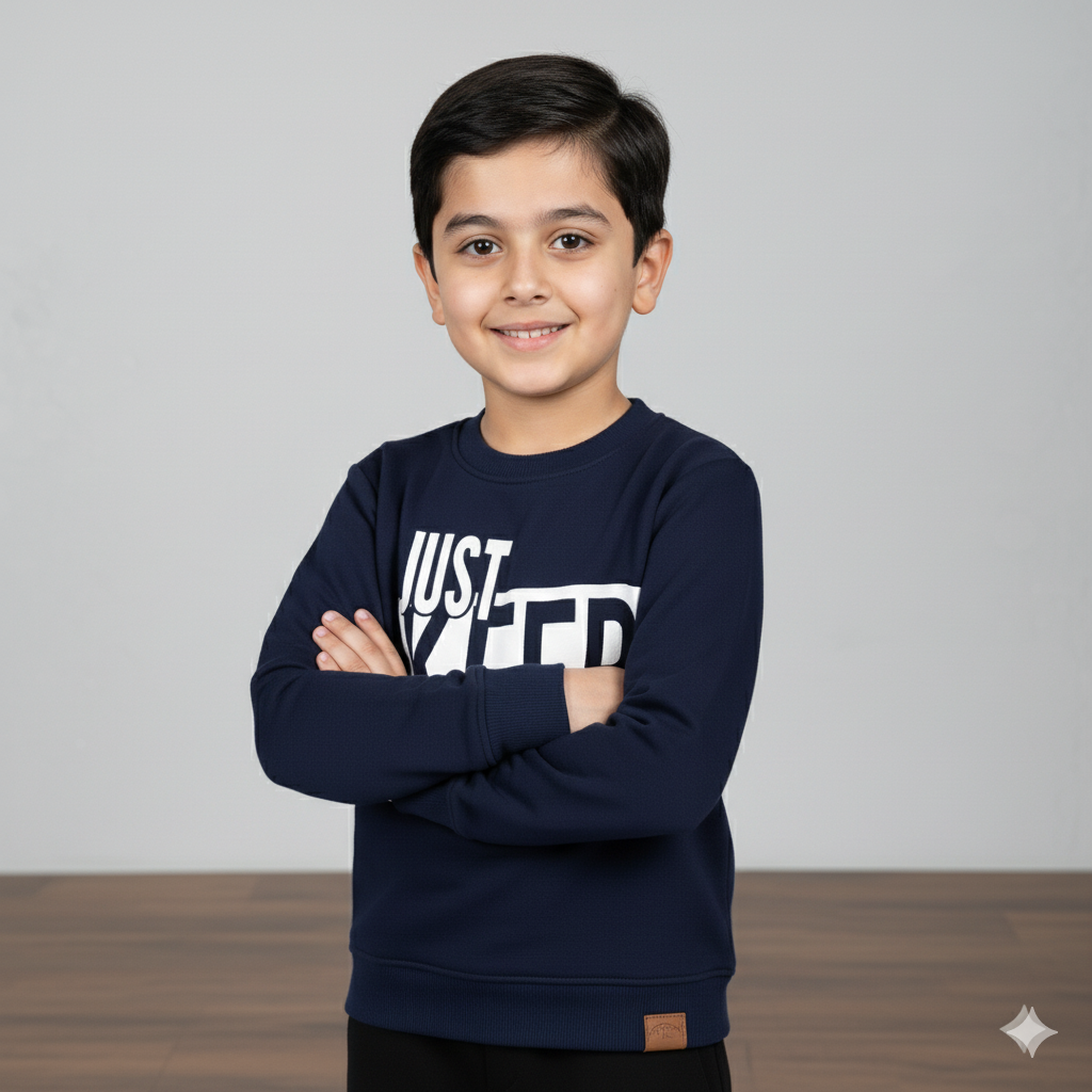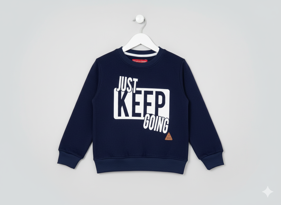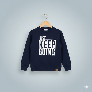 Inspire positivity and keep your child warm with this Kids Navy Blue Sweatshirt featuring a bold “Just Keep Going” motivational print. Perfect for casual wear, school, or playtime, this pullover combines comfort, durability, and style for the winter season.