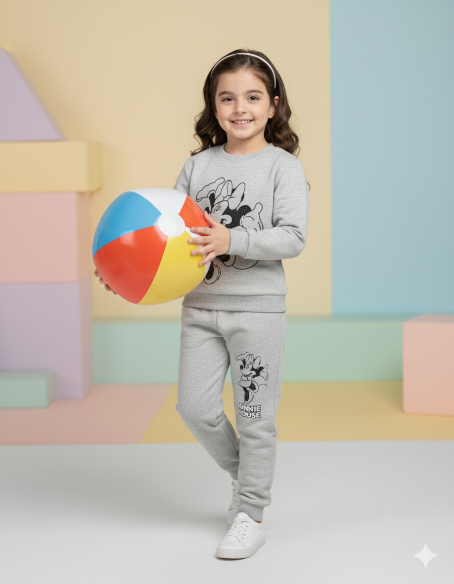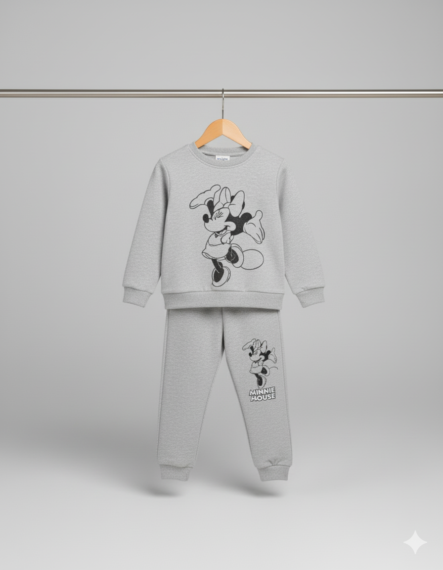 Embrace winter charm with our Silver Minnie Elegance Set—a two-piece tracksuit in a sophisticated grey shade adorned with delightful Minnie Mouse images. Crafted for comfortable winter wear, this set features excellent stitching and is made from high-quality fleece, ensuring both warmth and durability. Elevate your winter wardrobe with the Silver Minnie Elegance Set—a playful and stylish addition for those who seek both comfort and a touch of Minnie magic in their seasonal attire.