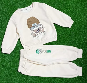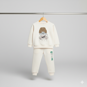 Cute Beige Teddy Bear Winter Tracksuit for Kids | Cozy Fleece Sweatshirt and pant Set