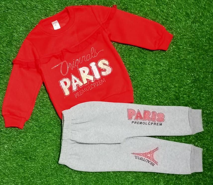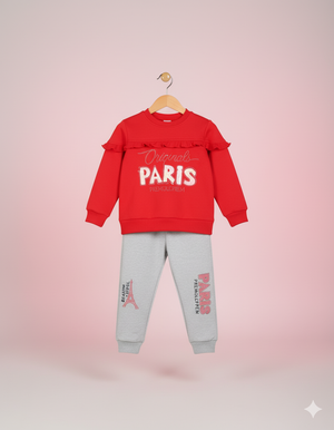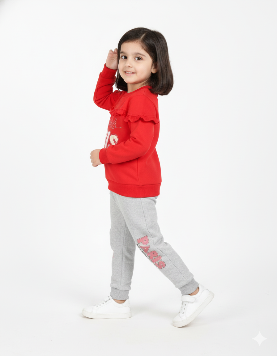 Stylish “Paris Originals” Red Winter Sweatshirt & Grey Set for Girls
